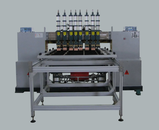 Rahmen, Druckmechanismus, Wasserkühlsystem, Schweißkreis, Kondensator-Stromversorgung, Steuerungssystem, Gehäuse, Schweißzylinder, Elektroden, Kühlkreislauf, Überwachungsvorrichtung und Sicherheitsmechanismus.
